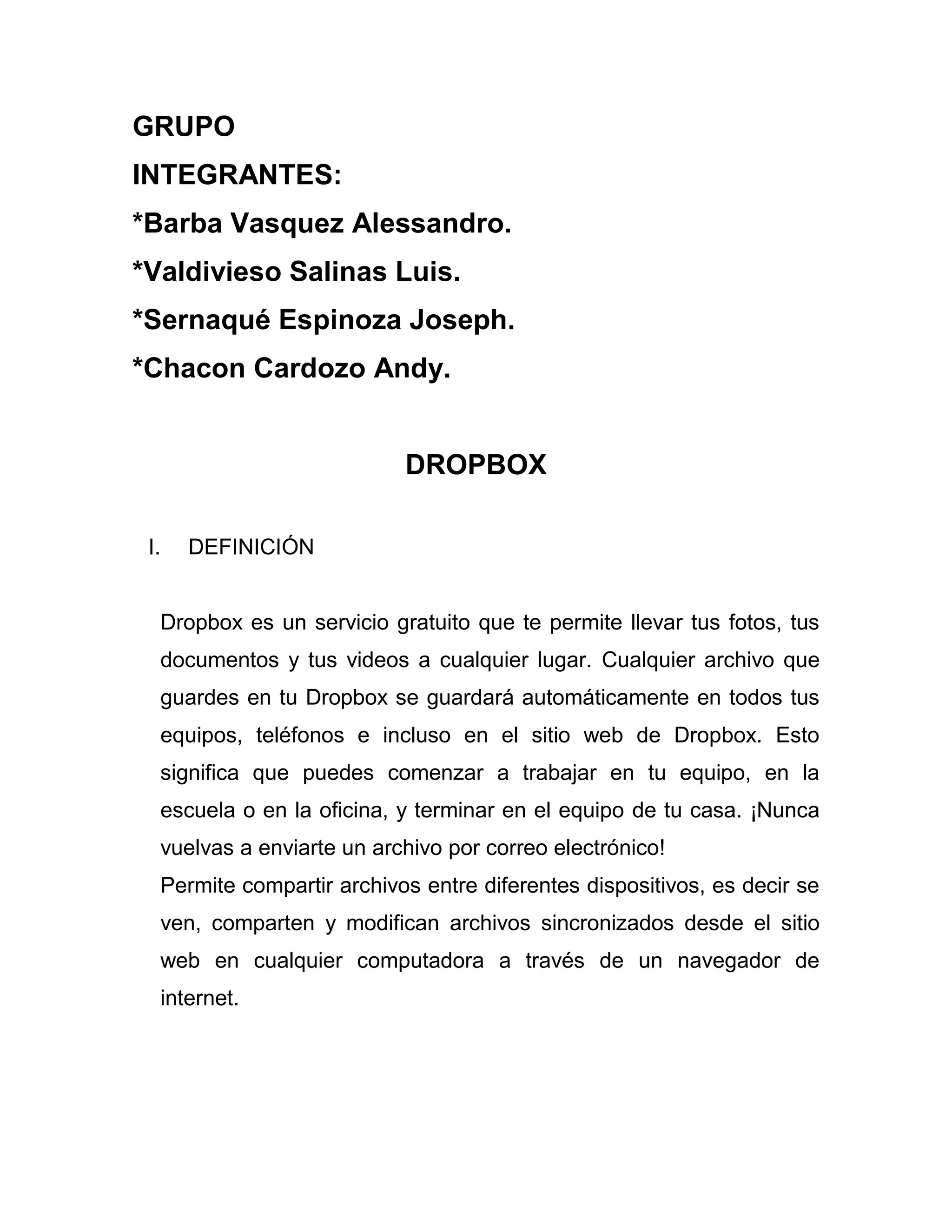 Este documento proporciona una introducción a Dropbox, un servicio de almacenamiento y sincronización en la nube. Explica que Dropbox permite a los usuarios almacenar y compartir archivos entre dispositivos a través de una carpeta sincronizada. También describe las funciones principales como la sincronización automática de archivos, la capacidad de compartir archivos y recuperar versiones anteriores. Finalmente, resume los diferentes tipos de cuentas de Dropbox, incluidas las cuentas gratuitas y de pago.