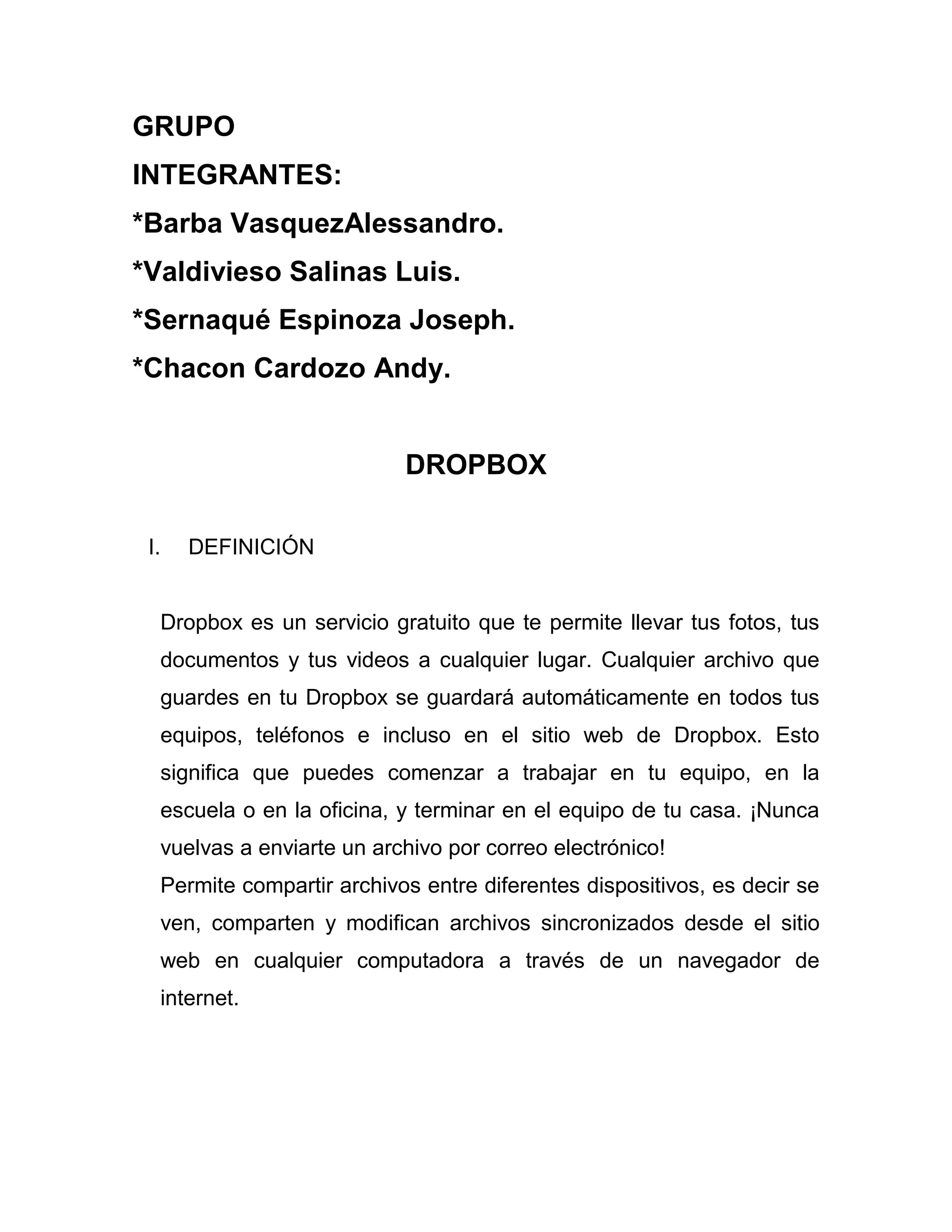 Este documento proporciona una introducción a Dropbox, un servicio de almacenamiento y sincronización en la nube. Explica que Dropbox permite a los usuarios almacenar y compartir archivos entre dispositivos a través de una carpeta sincronizada. También describe las funciones principales como la sincronización automática de archivos, la capacidad de compartir archivos y recuperar versiones anteriores. Finalmente, resume los diferentes tipos de cuentas de Dropbox, incluidas las cuentas gratuitas y de pago.