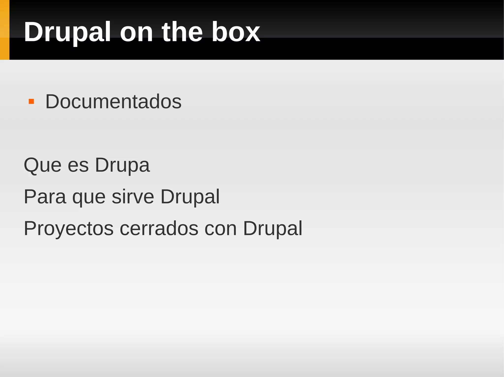 Este documento describe las capacidades de Drupal como un framework de código abierto para crear sitios web y aplicaciones. Explica que Drupal puede usarse para crear blogs, redes sociales, sitios de medios, sistemas de aprendizaje electrónico y más. También describe algunos proyectos cerrados basados en Drupal como Gardens, Open Atrium, Managing News, Commons y otros. Concluye que debido a su arquitectura de módulos, Drupal puede adaptarse fácilmente para satisfacer una amplia variedad de necesidades de proyectos.