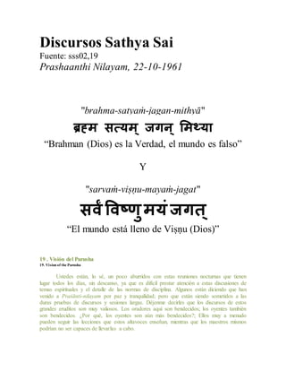 1. El discurso habla sobre dos declaraciones aparentemente opuestas: "Brahman es la Verdad, el mundo es falso" y "El mundo está lleno de Viṣṇu (Dios)".