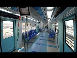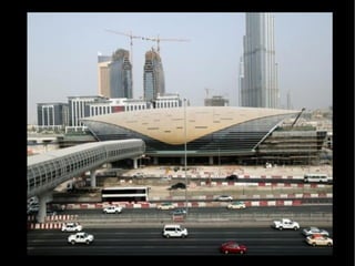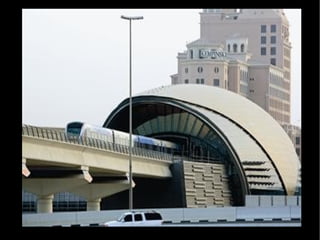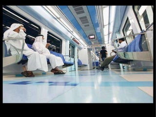Dubai está construyendo una red de metro con cinco líneas para aliviar el tráfico causado por los lujosos automóviles, siendo una de las redes más modernas del mundo que opera con energía eléctrica y de forma automática sin conductores. Hasta ahora se han construido dos líneas con 10 estaciones, pero se están desarrollando tres más, y las estaciones y trenes cuentan con aire acondicionado.