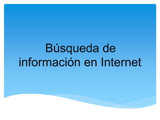 Este documento describe los buscadores de Internet y metabuscadores. Explica que los buscadores como Google usan motores de búsqueda para indexar páginas web, almacenando títulos, descripciones y palabras clave. También describe que los metabuscadores como Bing utilizan varios buscadores a la vez para obtener una lista más amplia de resultados sin sesgos.