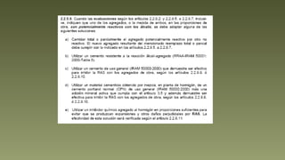 El documento describe los diferentes factores que afectan la durabilidad del hormigón, incluyendo ataques físicos como la acción de temperaturas bajas y altas, erosión y abrasión; ataques químicos como la lixiviación, ataque ácido, acción de bacterias, sulfatos, magnesio, agua de mar; y reacciones como la reacción álcali-agregado, reacción álcali-sílice, reacción álcali-carbonato. También menciona consideraciones sobre la durabilidad del hormig