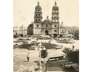 El documento lista lugares y eventos históricos de la ciudad de Durango, México. Incluye nombres como Barrio de Analco, Catedral de Durango, Cerro del Mercado, Estación de trenes, Hotel San Carlos, Monumento a Guadalupe Victoria, Plaza de la Constitución, Santuario de Guadalupe, y Teatro Victoria. También menciona fechas como 5 de febrero, 7 de diciembre de 1925, y 20 de noviembre en relación con eventos y lugares importantes de la historia de Durango.