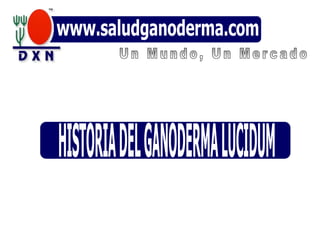 El documento habla sobre la historia y fundación de DXN. Explica que Dr. Lim Siow Jin fundó la compañía DXN en 1993 en Malasia después de más de 20 años de estudiar los beneficios del hongo Ganoderma lucidum. DXN ha crecido para convertirse en una compañía líder en la producción y venta de suplementos a base de Ganoderma lucidum utilizando tecnología avanzada.