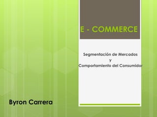 El documento habla sobre la segmentación de mercados y el comportamiento del consumidor en el comercio electrónico. Explica que al segmentar el mercado se maximizan los esfuerzos de marketing hacia ese segmento particular. Describe las variables demográficas, geográficas y socioeconómicas usadas para segmentar, y provee estadísticas sobre el perfil típico del consumidor online. Resalta que para atraer a los consumidores es importante ofrecer calidad, variedad, buenos precios y promociones, además de brindar una bu