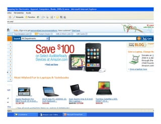Este documento define el comercio electrónico y describe sus diferentes tipos, incluyendo transacciones B2B, B2C y C2C. Explica que el comercio electrónico B2B permite a las empresas realizar pedidos y pagos de forma electrónica con proveedores, mientras que el B2C permite a las empresas vender productos directamente a los consumidores a través de sitios como Amazon y Dell.com. Finalmente, señala que los productos digitales como software y música son más fáciles de vender en línea que los productos fís