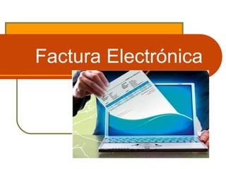 El documento describe la factura electrónica, incluyendo su normativa vigente, concepto, características, ventajas, sujetos alcanzados y tipos de comprobantes. También resume los sistemas de emisión de facturas electrónicas y compara brevemente los enfoques de España y Chile sobre la factura electrónica.