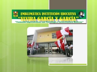 La institución educativa Elvira García y García busca brindar una educación de excelencia orientada a la formación integral de sus estudiantes con énfasis en valores. Su visión es ofrecer una educación sustentada en el desarrollo de capacidades y la práctica de valores para permitir que las estudiantes organicen su proyecto personal y contribuyan a una sociedad justa. Originalmente fundada como un colegio privado en 1943, pasó a ser una institución pública en 1951 y recibió su nombre actual en honor a la educadora Elvira García y