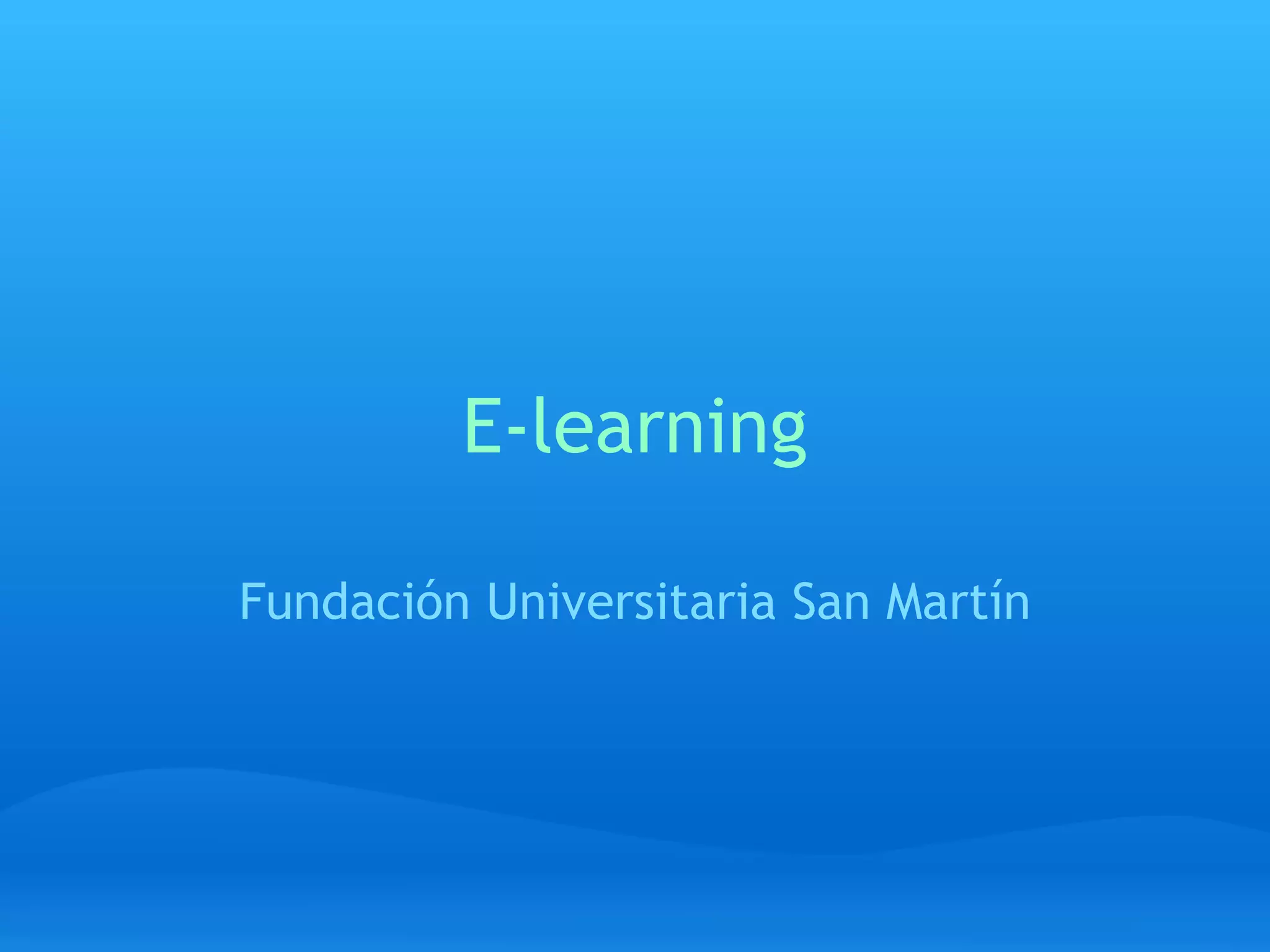 El documento describe los fundamentos y aplicaciones del e-learning. Explica que cuatro pilares justifican el éxito del e-learning: disponibilidad de redes, necesidad de personas mejor preparadas, conveniencia de educación oportuna y de bajo costo. También describe estándares como SCORM para compartir contenido pedagógico y plataformas como Blackboard y Moodle para administrar cursos en línea e interactuar con tutores y compañeros. Finalmente, menciona portales educativos populares como teachertube, YouTube-Edu e Instructables que ofrec