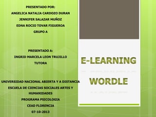 El documento describe la aplicación Wordle, que permite crear "nubes de palabras" a partir de texto introducido. Wordle genera posters con las palabras del texto, dando mayor tamaño a las palabras más frecuentes. Explica cómo usar Wordle para crear y personalizar nubes de palabras, así como compartirlas y guardarlas.