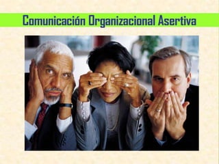 Este documento presenta un programa de capacitación sobre comunicación asertiva que consta de 8 etapas. El objetivo principal es mejorar las prácticas de comunicación organizacional de manera efectiva. Las etapas incluyen autoevaluación, videos demostrativos, reconocimiento de gestos, tests de asertividad, técnicas de oratoria, actividades de comunicación en línea y desarrollo de tolerancia para escuchar sin juzgar.