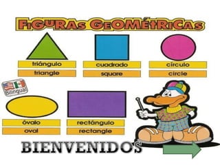 Este documento presenta diferentes juegos y actividades para que niños en edad preescolar aprendan sobre figuras geométricas de una manera dinámica y entretenida. Los objetivos son identificar figuras geométricas a través de juegos, desarrollar la motricidad fina al elaborar figuras con plastilina, y utilizar las figuras para crear dibujos. Se incluyen instrucciones para juegos como identificar figuras en imágenes y resolver acertijos geométricos.