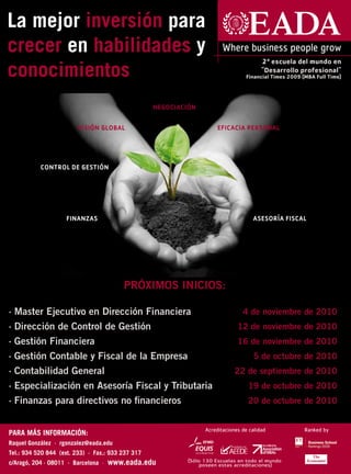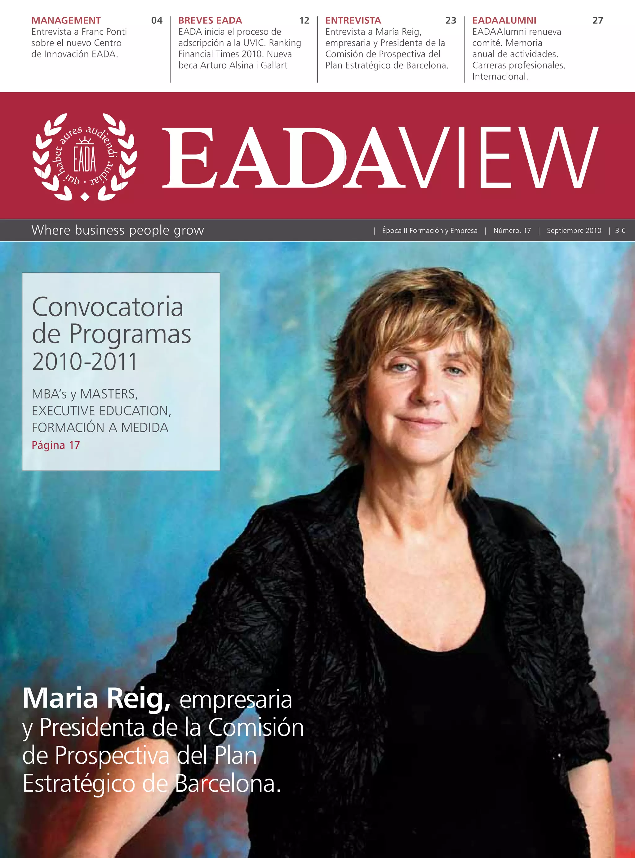 1) EADA inauguró recientemente su nuevo Centro de Innovación, dirigido por Franc Ponti, con el objetivo de proveer herramientas académicas para la innovación empresarial.