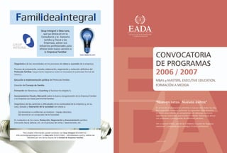 El documento presenta varios artículos cortos sobre temas de gestión, entrevistas y eventos de EADA. Un artículo discute cinco reflexiones para disfrutar de la innovación, incluyendo que la creatividad no es patrimonio de nadie y que los valores de la innovación se transmiten a través del ejemplo, no racionalmente. Otro artículo presenta una entrevista con el director general de una emisora de radio quien dice que la innovación no puede dejarse solo a unos pocos visionarios. Finalmente, otro artículo breve describe un evento de