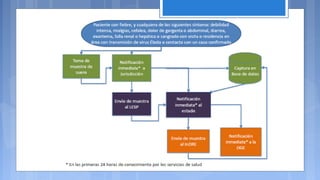 El documento describe la declaración de emergencia de salud pública internacional por el brote de ébola en África occidental en 2014, destacando su gravedad y la necesidad de una respuesta coordinada. Desde su aparición en diciembre de 2013, la epidemia ha causado más de 24,700 casos y 10,200 muertes principalmente en Liberia, Sierra Leona y Guinea. Se presentan detalles sobre la patogenia, síntomas, diagnóstico y tratamiento del virus del ébola, subrayando la importancia de la prevención y educación del personal sanitario.