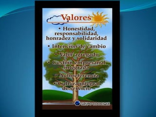 Este documento discute varios conceptos clave relacionados con valores y sociedad. Aborda la dignidad humana, los valores positivos y negativos, el anarquismo como la ausencia de reglas sociales, la civilidad como respetar a los demás siguiendo normas sociales, y la democracia como la toma de decisiones colectivas a través de la participación pública. También destaca la unión familiar, el amor, la confianza y la solidaridad como factores esenciales para una familia, y define la meta como el objetivo que