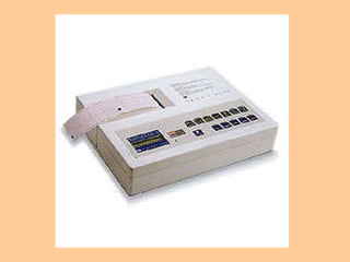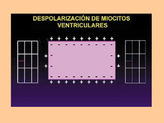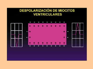 Este documento describe las características básicas de una electrocardiografía, incluyendo el papel usado, la representación del latido cardíaco, los intervalos comunes como el QT y el PR, las derivaciones en los planos frontal y horizontal, la localización normal del eje eléctrico, y un trazado electrocardiográfico normal.