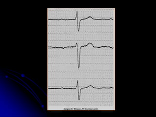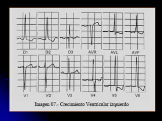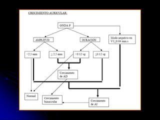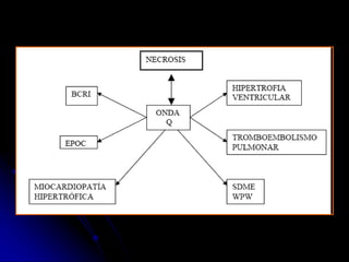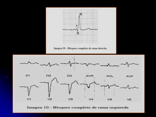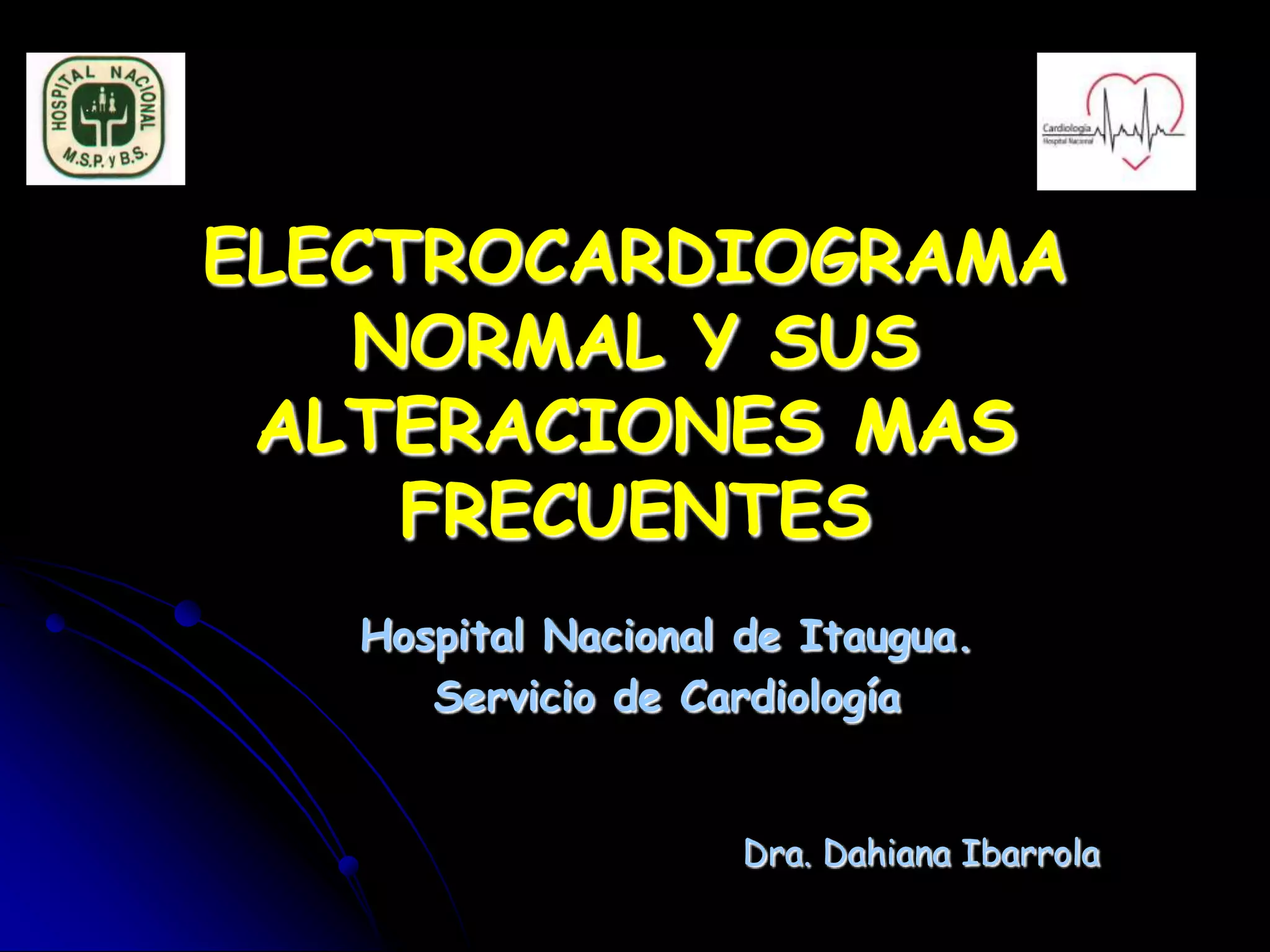 Este documento proporciona una guía sobre cómo interpretar un electrocardiograma (ECG) normal y sus alteraciones más comunes. Explica los componentes básicos de un ECG como las ondas, intervalos y derivaciones, e identifica alteraciones como hipertrofia ventricular, bloqueos auriculoventriculares, elevaciones o depresiones del segmento ST, y cambios en las ondas T que pueden indicar isquemia. El documento provee una guía paso a paso para analizar un ECG y detectar cualquier anormalidad.