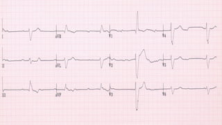 Este documento proporciona información sobre la lectura y análisis de un electrocardiograma (ECG). Explica las ondas y segmentos que componen el ECG, incluyendo la onda P, el complejo QRS, el segmento ST y la onda T. También describe cómo determinar el ritmo cardiaco, la frecuencia cardiaca, y el eje eléctrico a partir de la información presentada en el ECG. El objetivo es enseñar a los lectores a analizar sistemáticamente un ECG para diagnosticar posibles anomalías.