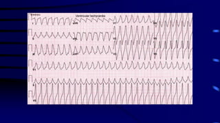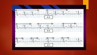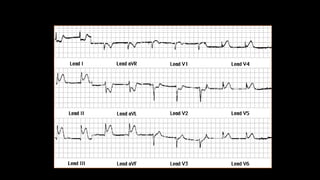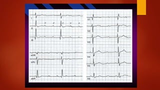 Este documento presenta información sobre diferentes trastornos cardiacos evaluados a través del electrocardiograma. Incluye descripciones del agrandamiento auricular izquierdo y derecho, la hipertrofia ventricular izquierda y derecha, y las extrasístoles auriculares y ventriculares. Explica las características, causas y manifestaciones electrocardiográficas de cada una de estas patologías.