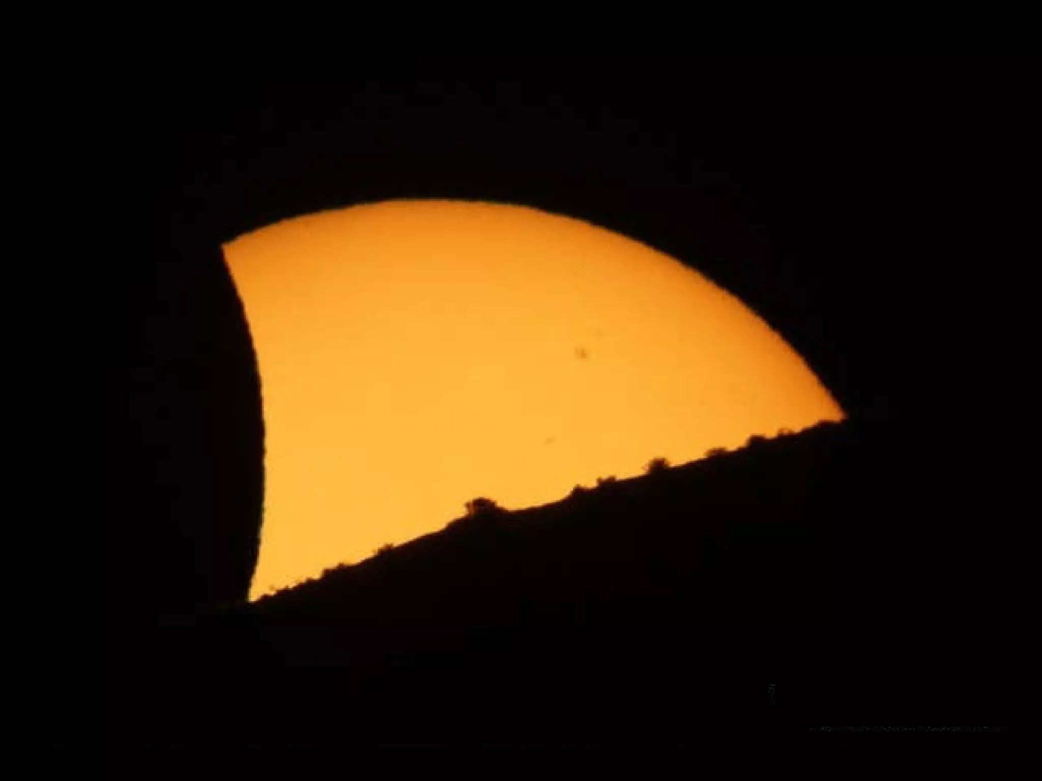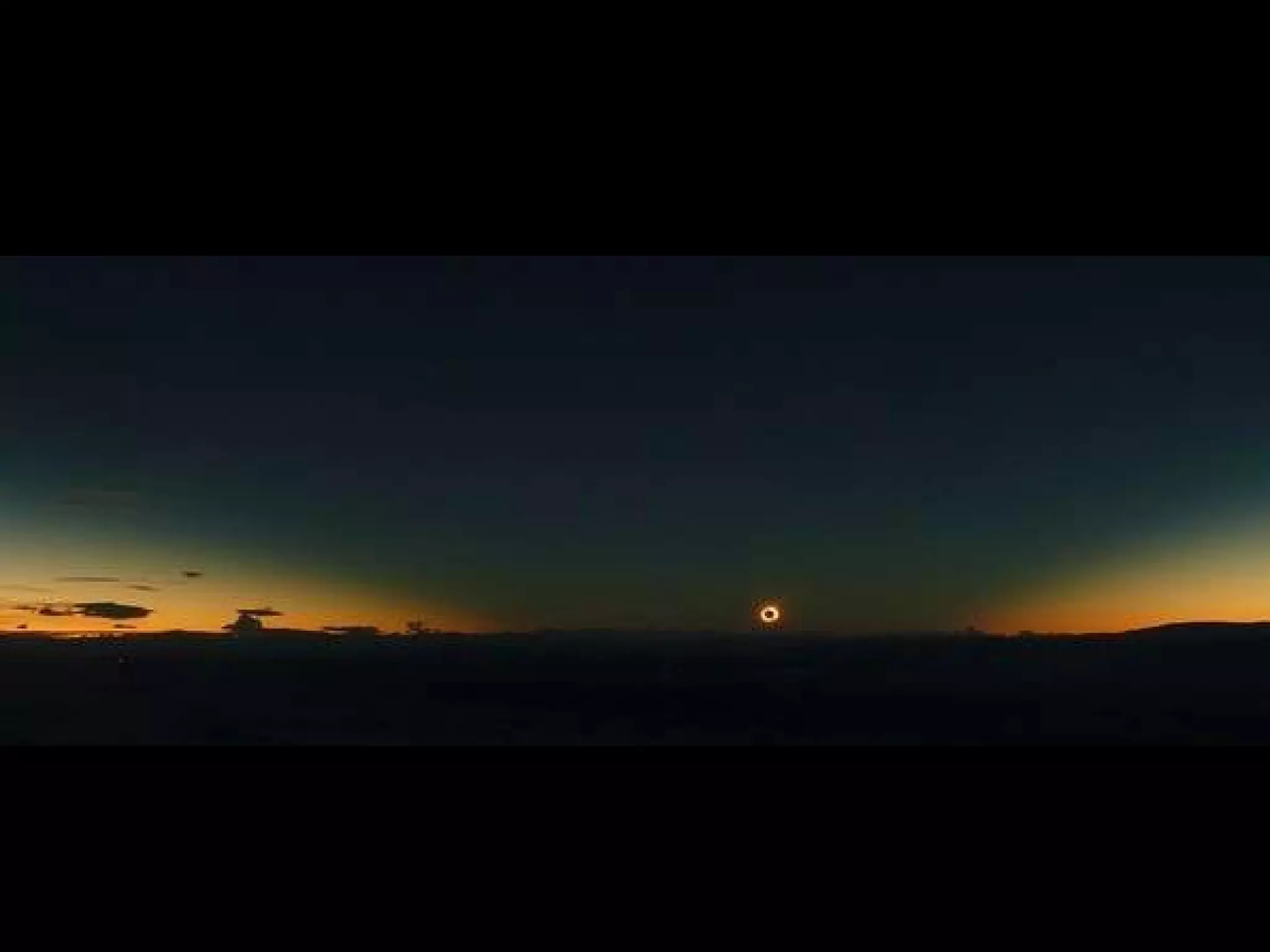 El documento describe uno de los momentos más bellos en la vida del autor: presenciar un eclipse solar espectacular desde la Patagonia Argentina, donde la luna se interpuso entre el sol y la tierra al atardecer, bloqueando parcialmente la luz del sol y creando un paisaje celestial único capturado en una hermosa fotografía.
