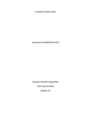Este documento presenta un resumen de un proyecto escolar sobre ecología. El proyecto incluye una introducción al tema de la ecología, una serie de preguntas realizadas a familiares sobre conceptos ecológicos, y las conclusiones del estudiante sobre la ecología y sus principales conceptos como cadenas alimentarias, niveles tróficos, ecosistemas y sus componentes.