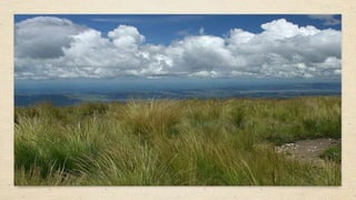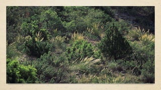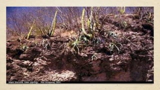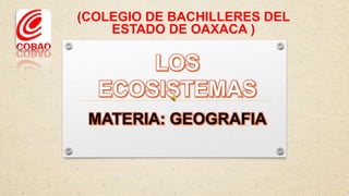 El documento describe los diferentes ecosistemas que existen en el mundo y en México, incluyendo bosques templados, tropicales, desiertos, tundras, praderas, matorrales, chaparrales, selvas secas y húmedas, pastizales, suelos salinos y el océano. Cada ecosistema se caracteriza por tener plantas y animales únicos adaptados a las condiciones climáticas como la luz solar, precipitación y temperatura de esa región.