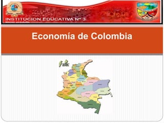 El documento describe la economía de Colombia, incluyendo sus principales sectores como la agricultura (café), petróleo, minería (esmeraldas, oro), industria (textiles, automotriz) y servicios. Explica que la economía colombiana se ha fortalecido en los últimos años, convirtiéndose en la cuarta economía más grande de América Latina. Los sectores agrícola, manufacturero, comercio y financiero son los que más contribuyen al PIB del país.