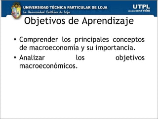 El documento detalla conceptos fundamentales de macroeconomía, incluyendo los objetivos de producción, empleo y estabilidad de precios, así como las herramientas de política macroeconómica como la política fiscal y monetaria. Se describe cómo el PIB y la inflación se miden y se relacionan con el desempeño económico general. Además, se aborda la interacción entre la oferta y la demanda agregadas y su impacto en la economía.