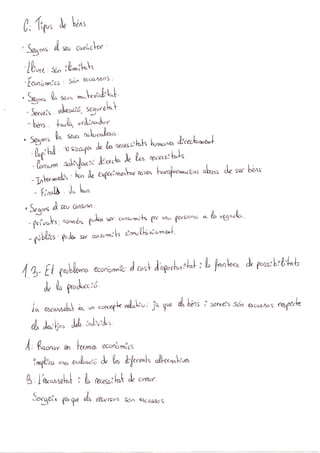 Este documento resume los principales conceptos de la economía y la microeconomía. Explica que la economía estudia cómo los individuos y las sociedades gestionan sus recursos escasos. También describe algunos conceptos clave de la microeconomía como la oferta y la demanda, así como el coste de oportunidad y cómo afecta a las decisiones individuales y de las empresas.