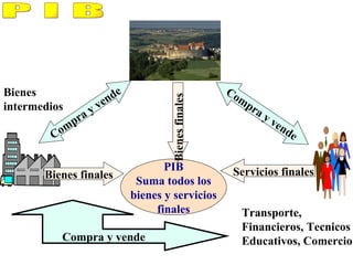 El documento define conceptos económicos básicos como PIB, valor agregado e inflación. El PIB mide la producción total de un país en un período, eliminando los efectos de la inflación. El valor agregado mide la contribución de cada sector después de restar insumos. La inflación es el aumento generalizado y permanente de precios que reduce el poder adquisitivo.