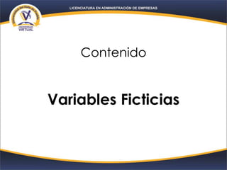 El documento explica cómo introducir variables ficticias en un modelo de regresión para determinar si la relación entre dos variables depende de un tercer factor o grupo. Se estima un modelo que incluye la variable ficticia y su interacción con la variable independiente principal para capturar posibles diferencias en las pendientes entre grupos. Esto permite analizar si factores como el sexo, el estatus laboral u otros atributos modifican la relación entre las variables estudiadas.