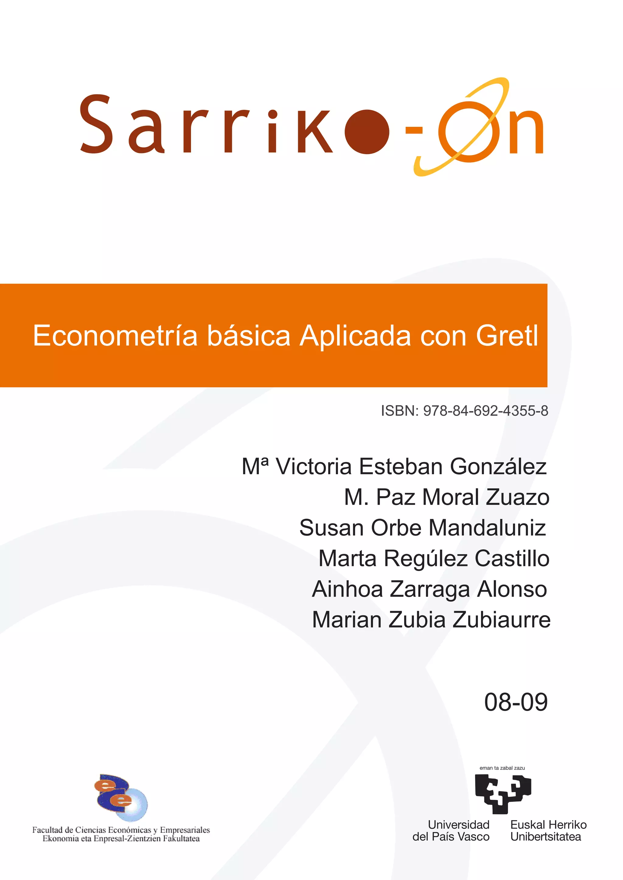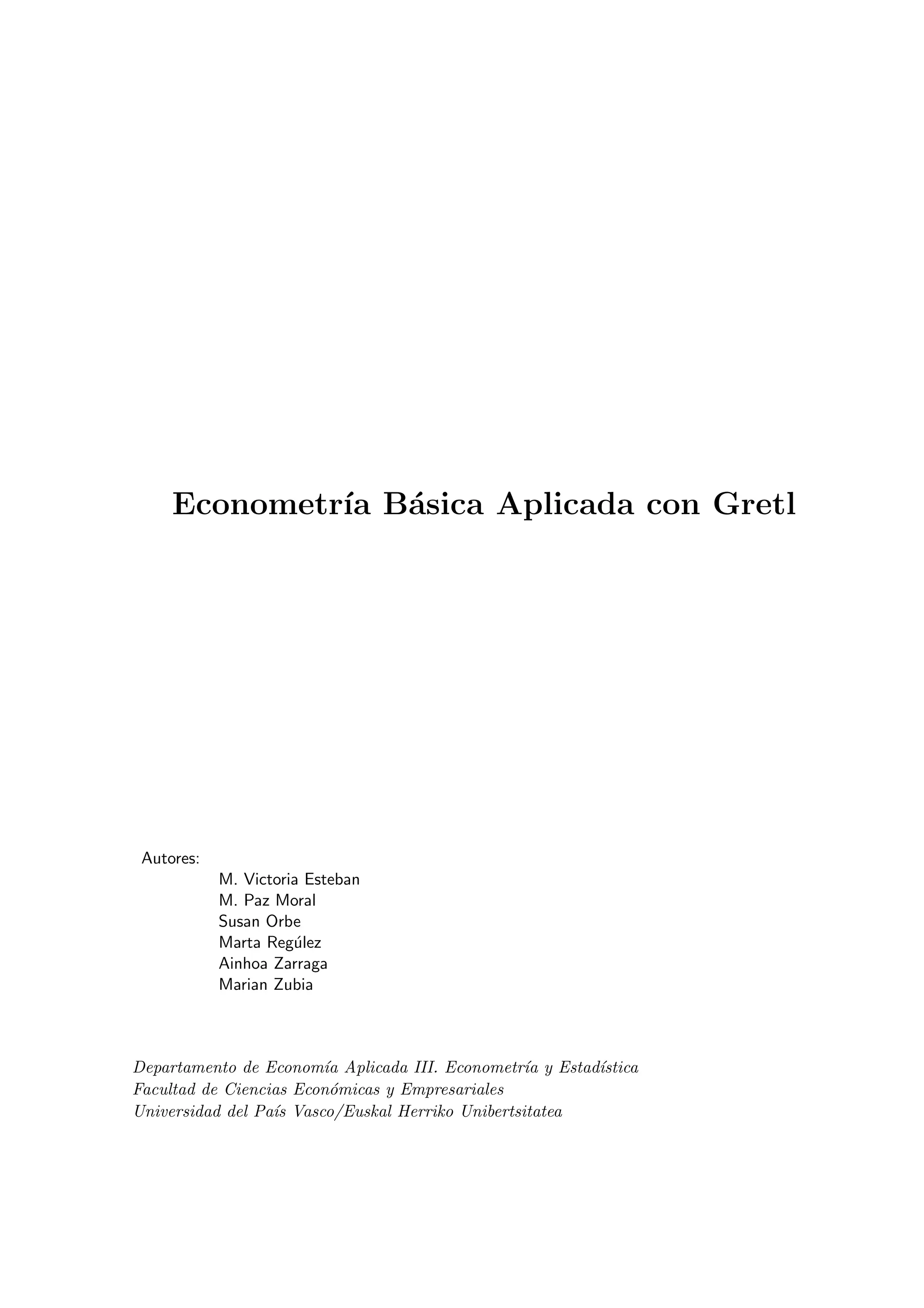 Este libro presenta los conceptos básicos de la econometría aplicada utilizando el software libre Gretl. Explica los modelos de regresión lineal simple y múltiple, contrastes de hipótesis, intervalos de confianza y predicción. Incluye ejemplos y ejercicios resueltos para que los lectores practiquen los métodos econometricos con datos reales.