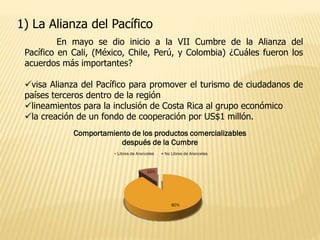 Este documento resume los 10 hechos económicos más importantes a nivel internacional en 2013, incluyendo el crecimiento de la Alianza del Pacífico, las reformas económicas en Japón y China, la salida de crisis de la Eurozona, el cierre parcial del gobierno de EE.UU., la desaceleración de las economías emergentes, el debut de Twitter en bolsa, la salida de España de la recesión, el inicio del tapering por parte de la FED, y las megatransacciones empresariales del año.
