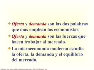 1) La oferta y la demanda son las fuerzas que determinan cómo interactúan compradores y vendedores en los mercados.