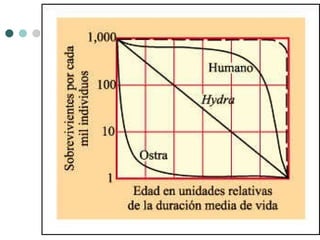 El documento trata sobre la ecología de poblaciones. Explica conceptos como la densidad de población, las tasas de natalidad y mortalidad, el crecimiento de poblaciones y las estrategias r y K. También describe la sucesión ecológica como el proceso por el cual las comunidades cambian hasta alcanzar un estado estable, y cómo las actividades humanas simplifican y perturban los ecosistemas.