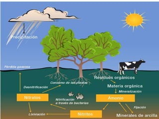 Un ecosistema se define como la interacción entre organismos vivos y su medio ambiente en un área delimitada. Los ecosistemas incluyen productores, consumidores y descomponedores, así como factores abióticos. Los principales ciclos que mantienen la energía fluyendo en un ecosistema son los ciclos del oxígeno, carbono, nitrógeno e hidrológico, los cuales implican la transferencia de estas sustancias entre organismos y el ambiente a través de procesos como la fotosíntesis, respira