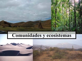 El documento describe los conceptos fundamentales de ecosistema, comunidad y flujo de energía. Explica que un ecosistema está formado por organismos vivos y factores ambientales no vivos que interactúan. Se describen las relaciones tróficas entre productores, consumidores y descomponedores, y cómo fluye la energía a través de las cadenas y redes alimentarias. También se explican los conceptos de pirámide alimenticia y cómo representa gráficamente las relaciones numéricas entre los diferentes niveles tróficos de un ecos