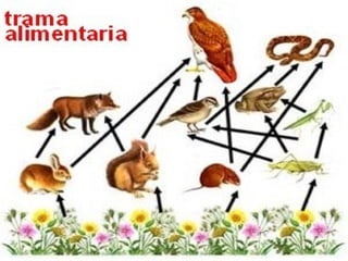 Este documento describe los conceptos fundamentales de ecología y medio ambiente. Explica que la ecología estudia las interrelaciones entre organismos y su medio ambiente físico y biótico. También describe los diferentes niveles de organización de la materia viva, incluyendo ecosistemas, comunidades y poblaciones. Finalmente, define los componentes clave de un ecosistema, incluyendo seres vivos, condiciones físicas y las relaciones tróficas entre productores, consumidores y descomponedores.