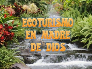 El documento presenta información sobre ecoturismo, desarrollo sostenible y la situación del ecoturismo en Madre de Dios, Perú. Explica que el ecoturismo es una forma de turismo responsable que favorece la conservación de la naturaleza y mejora las condiciones de vida locales. También describe factores como la infraestructura, recursos y demanda del ecoturismo en Madre de Dios, así como los desafíos que enfrenta el sector, incluyendo falta de visión gubernamental y marco legal incompleto.