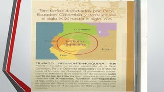 El documento detalla los eventos clave de Ecuador entre 1830 y 1845, comenzando con la promulgación de la primera constitución que establecía un gobierno unitario y democrático. Se discuten los efectos negativos del gobierno de Flores, incluidas las políticas económicas y el descontento popular que llevaron a su derrocamiento, así como la expansión de haciendas que afectaron a las comunidades indígenas. También se menciona la contribución de Vicente Rocafuerte en educación y leyes, y su papel tras la caída del floreanismo.