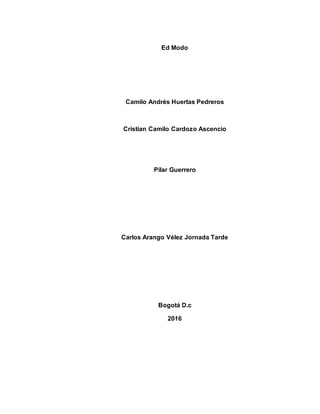 Edmodo es una plataforma educativa en línea gratuita que permite a profesores y estudiantes comunicarse y compartir recursos educativos de forma privada y segura. Los profesores pueden crear grupos de clases, asignar tareas, calificar trabajos, y comunicarse con estudiantes y padres. Edmodo ofrece una alternativa social a los sistemas de gestión del aprendizaje tradicionales, permitiendo publicaciones en un muro de noticias así como grupos de discusión y encuestas.