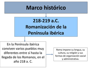 La península ibérica experimentó varios cambios a lo largo de la historia. Primero fue romanizada entre los siglos III a.C. y V d.C. Luego, los musulmanes la conquistaron en el siglo VIII. Esto dio lugar a Al-Ándalus, periodo de tolerancia religiosa y difusión cultural. Entre los siglos VIII y XV, los reinos cristianos la reconquistaron gradualmente hasta completarse en 1492 con la toma de Granada.