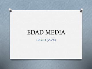 La Edad Media abarcó los siglos V al XV y marcó el periodo entre la caída del Imperio Romano y el Renacimiento. Fue una época dominada por el feudalismo y las continuas guerras, con una fuerte influencia de la Iglesia. Algunos de los países más importantes fueron Francia, Alemania, Italia e Inglaterra. La Edad Media finalizó en 1453 con la caída del Imperio Bizantino.
