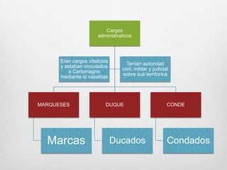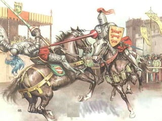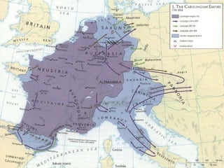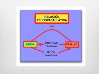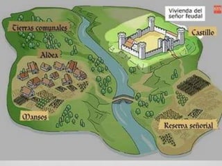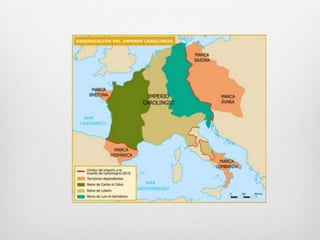Este documento resume la Edad Media, periodo que abarca desde la caída del Imperio Romano Occidental en el siglo V d.C. hasta la caída del Imperio Bizantino en el siglo XV d.C. Describe los principales acontecimientos como las invasiones germánicas, el surgimiento y decadencia del Imperio Carolingio, el desarrollo del feudalismo y las cruzadas. También menciona el surgimiento del Islam y su expansión en la península ibérica, así como el resurgimiento de las ciud