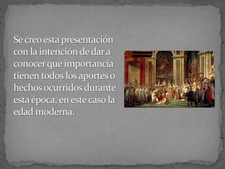 La burguesía surgió cuando los siervos abandonaron a los señores feudales y formaron centros urbanos llamados burgos. La burguesía impulsó el comercio, la circulación monetaria y los viajes de exploración que llevaron al descubrimiento de América y Asia. Esto condujo al surgimiento de las monarquías nacionales en España, Francia, Inglaterra y Rusia y al florecimiento del Renacimiento y su énfasis en el humanismo.