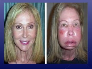 El documento describe el edema, definido como un incremento clínicamente manifiesto del volumen del líquido intersticial. Explica que el edema se produce por un desequilibrio en las fuerzas de Starling que regulan la distribución de los líquidos entre los compartimientos vascular e intersticial, lo que puede deberse a hipoalbuminemia, daño endotelial, disminución del volumen arterial efectivo, o falla cardiaca. También enumera algunas causas comunes de edema y estrategias para su tratamiento.