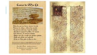 Los cantares de gesta eran poemas épicos medievales narrados oralmente por juglares sobre hechos heroicos de personajes importantes como El Cid, ya que la mayoría de las personas eran analfabetas. Estos poemas constaban de miles de versos y los juglares los dividían en jornadas para su recitación.