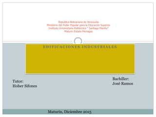 Este documento resume las características principales de las edificaciones industriales. Estas incluyen espacios para la producción y almacenamiento de bienes industriales, y están compuestas por obreros, maquinaria y transporte interno y externo. Algunos ejemplos de edificaciones industriales son oficinas, depósitos, almacenes, vestuarios y sanitarios. El documento también discute consideraciones de ubicación, técnicas de construcción y condiciones ambientales para edificaciones industriales.
